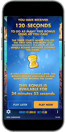 - Play Now/Play Later feature available, allowing players to choose the best time for claiming the bonus within a configurable time frame.