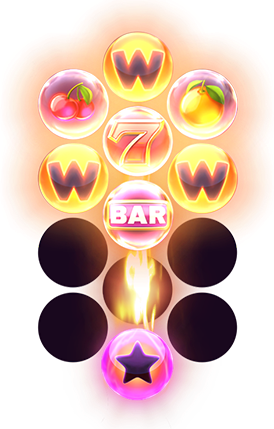 The Shooting Star strives to move upwards. When it reaches the top, it creates a mixed collection of up to 7 symbols, always guaranteeing some wilds!